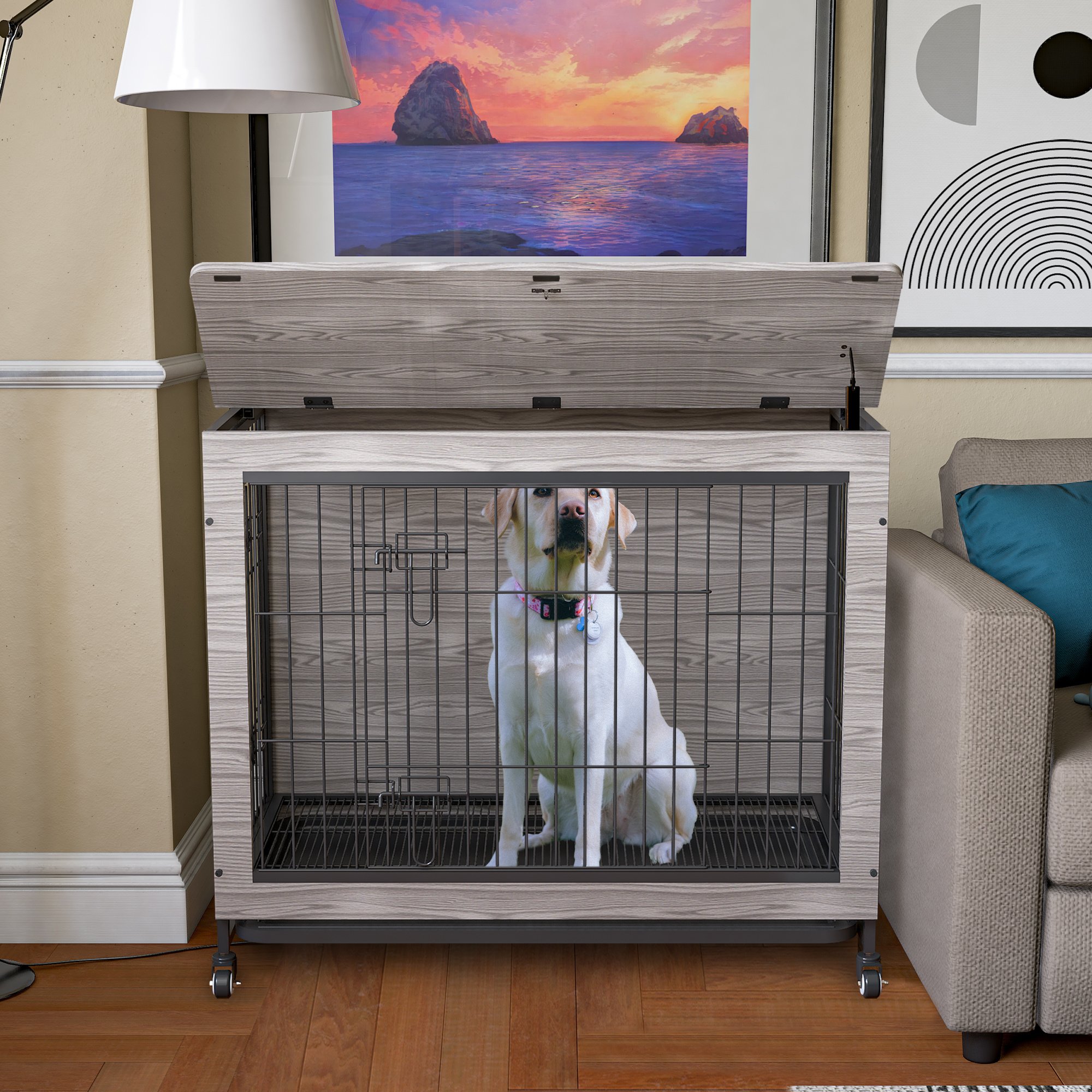 Particleboard and wire construction: Chew-resistant construction for pet-safe durability and long service life.