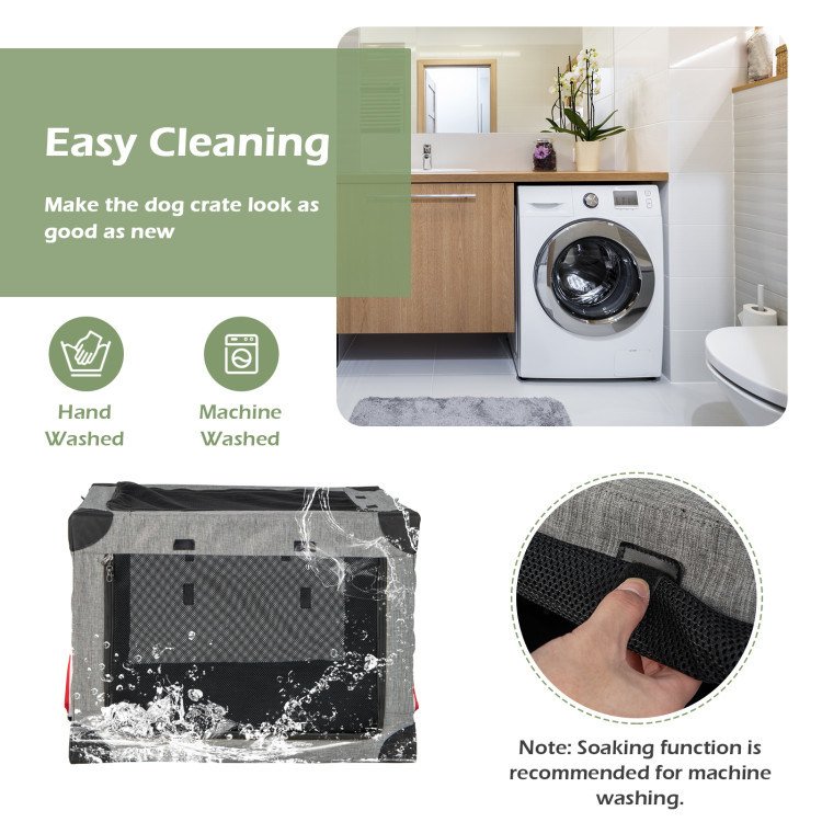 4.Reinforced and Safe Metal Frame: The folding kennel consists of strong but lightweight metal tubes, making high strength and easy portability well ensured. Inner X-shaped metal frame further enhance overall stability. Plus, its corners are protective and effective to avoid abrasions or hurtful collisions during the transportation.