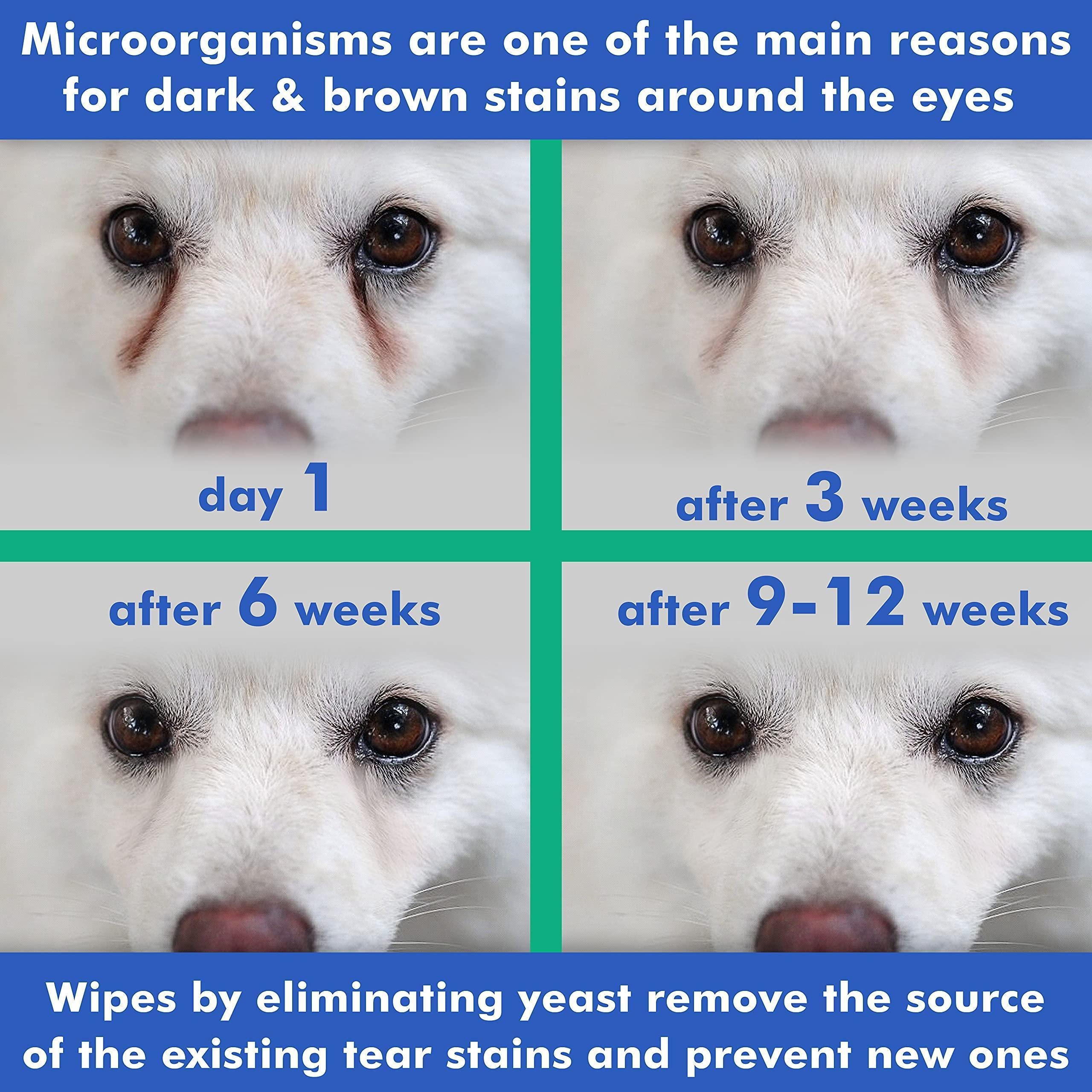 1.does not remove existing stains - arava pet eye wipes prevent new tear stains and remove the gunk that can collect in the corner of your dog or cats eyes. in order to eliminate any existing tear stains, please use arava tear stains remover solution.